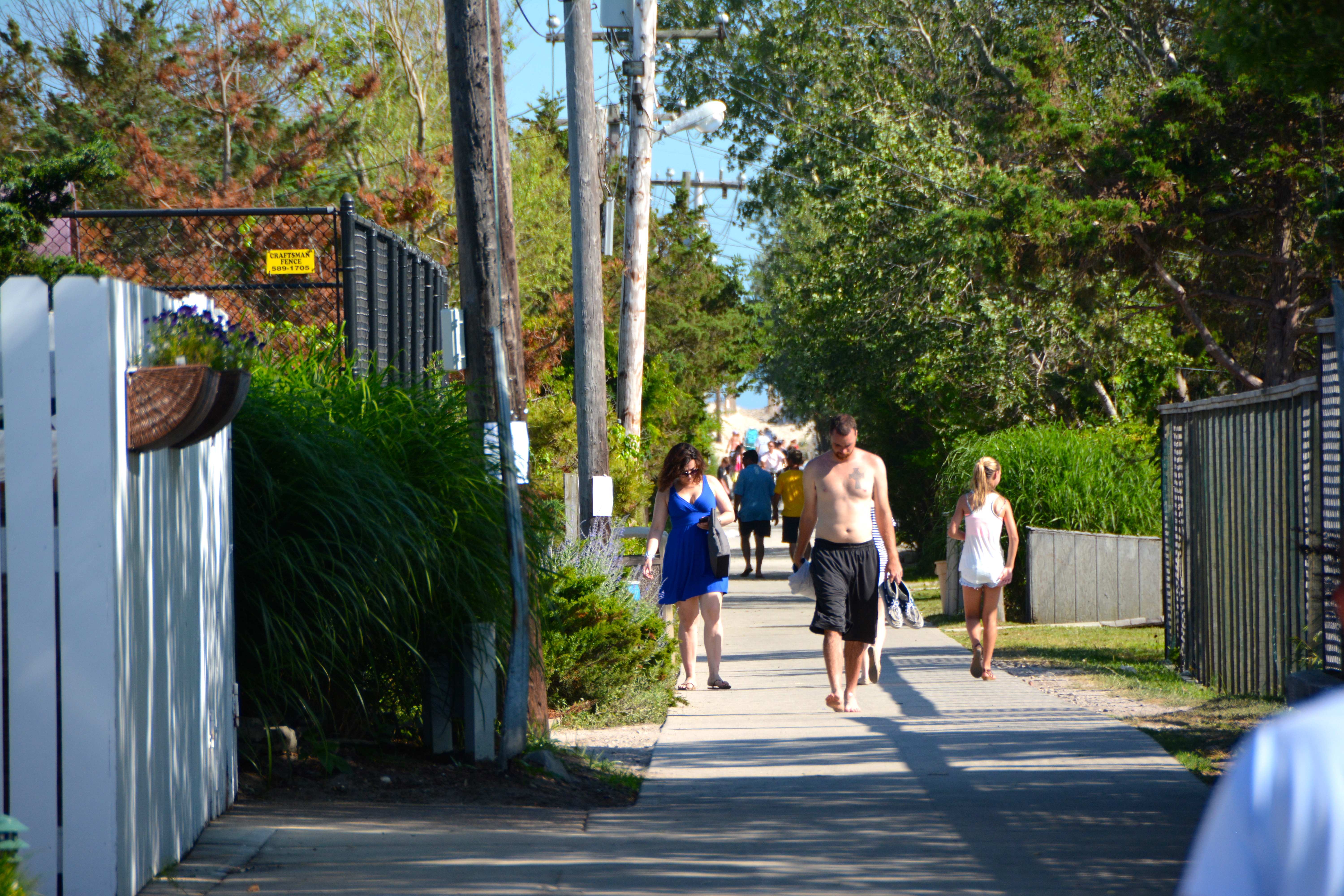 One of the walkways to the beach. The ferry docks on the opposite side of the beach, so we walked across the island to the ocean. It’s a short walk, under 10 minutes, and very scenic. If you look closely, you can see the sand at the end of this path.