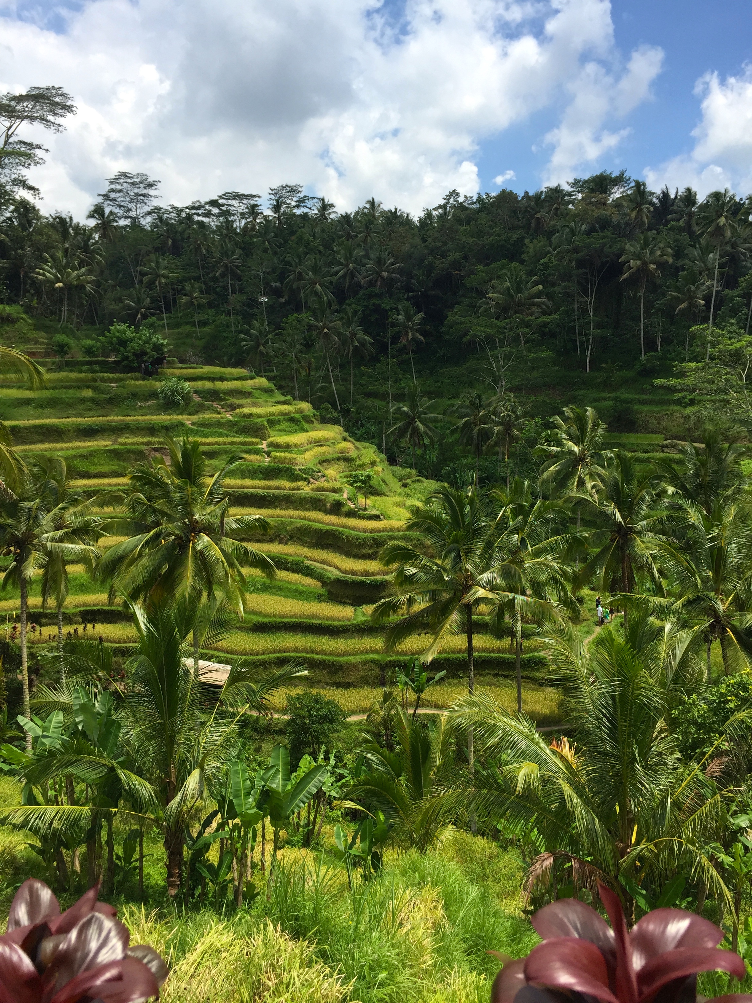 3. Climbing Mt. Batur to see the sun rise. This was an AMAZING experience! We had planned on doing it before we even got to Bali and our hotel set us up with a tour. We were picked up at 2:30AM and driven out to a coffee plantation at the base of the volcano. We joined a bunch of other sleepy tourists and were fed a chocolate/banana crepe and tea/coffee. In a short time we got back in the car and drove further up the base until we came to a large parking lot. There were A LOT of people and according to some, this is where the BALI mafia runs its operations. Apparently, you can’y just drive up and go up Mt. Batur on your own (and I wouldn’t recommend that). You have to go with a “mafia” approved tour guide-this is how they make money. Our tour guide was a nice young man who said he makes the trek twice a day and it was obvious he wasn’t a rookie (like us) because as we were huffing and puffin our way up, he didn’t even break a sweat. The climb took around 2 hours to complete, and I recognize that this isn’t too long but you must understand that there was no actual “path” up. Majority of the way up was a steep and very narrow path that was very rocky and actually pretty dangerous. There was nothing to hang on to and if you lost balance, there’s a very high chance that you’d just tumble down the steep side of the volcano and get really injured. What was amazing to see though is the single file line of flashlights walking up-even though it was pitch black, the flashlights created a beautiful reminder that you are not alone and can do it. We got to the first summit and I thought-yes! We made it! I’m sitting down and not moving for the rest of the day. Wrong. Our group continued for another 25 minutes to the very top-and boy am I glad we did! The beautiful sunrise we watched from the very top was so magical- the sun began to rise from behind a mountain that was directly across from us, and most of the sunrise happened below us-or at least that’s what it looked like. We stayed up there for over an hour- watched the wild monkeys wake up and do their thing (literally..DO their thing ;), ate boiled eggs and a banana sandwich (which we shared with these funny monkeys) and just enjoyed the beauty all around us.