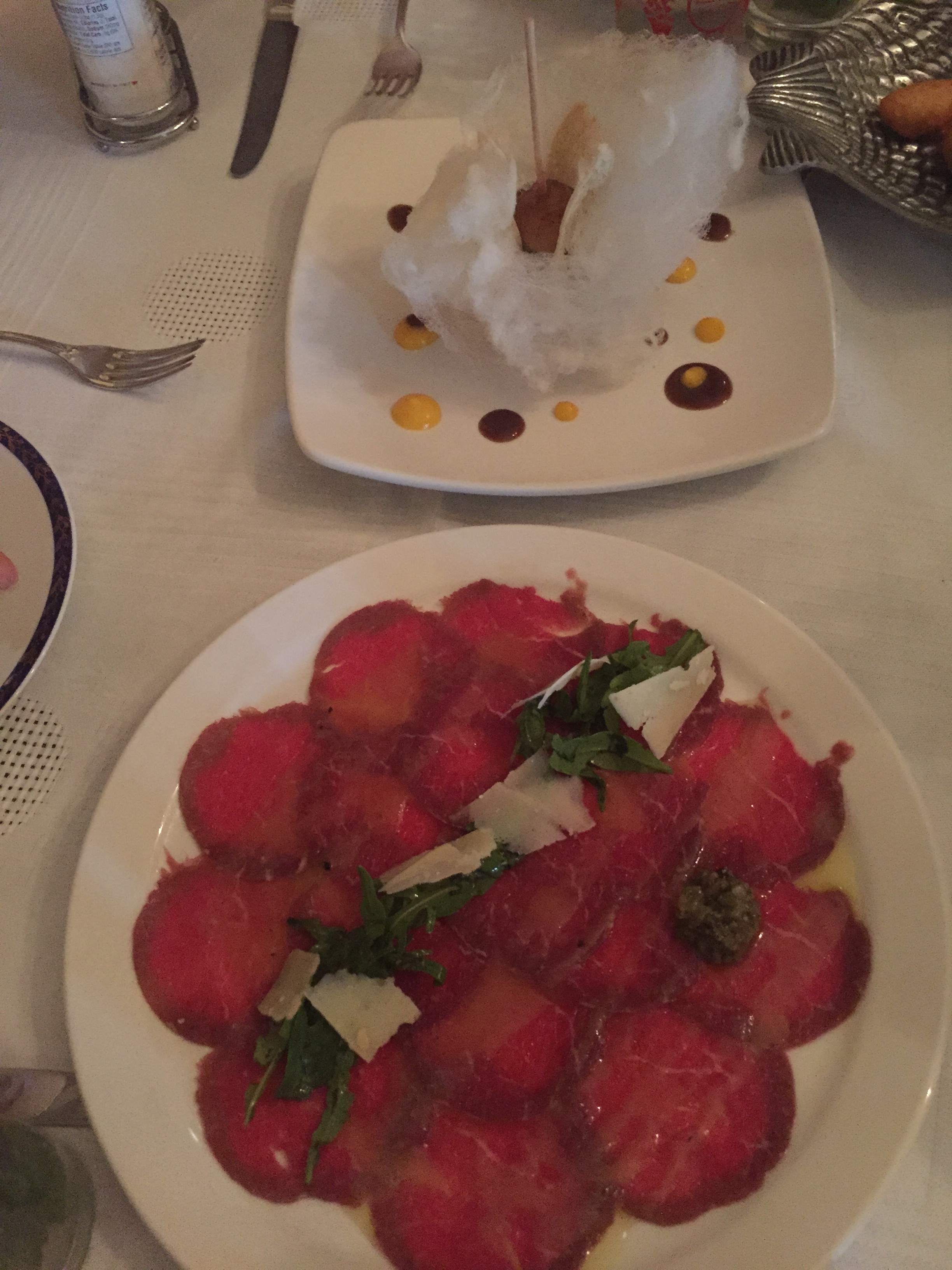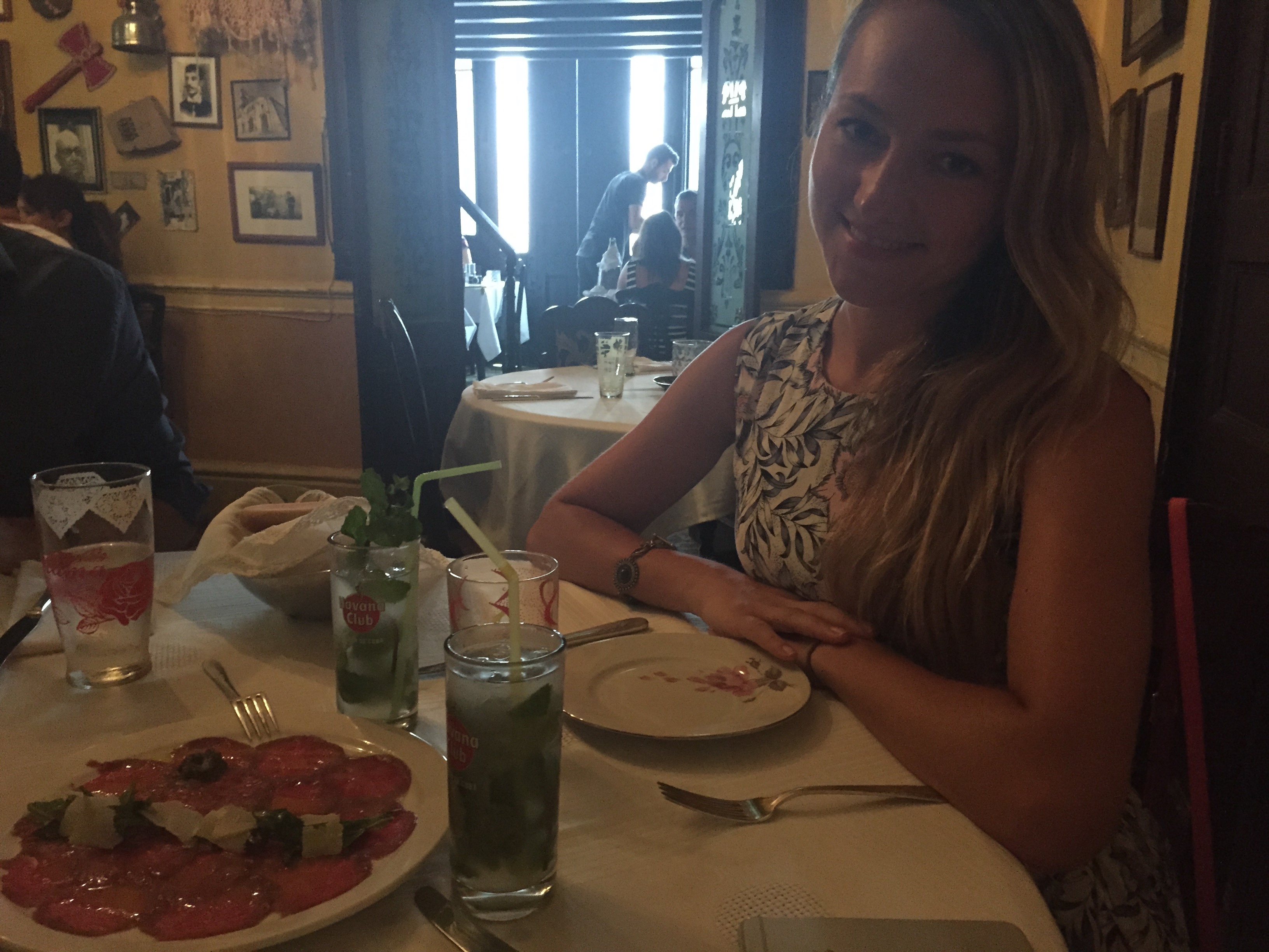 3.Paladar La Guardia- we made reservations for this restaurant while still in the states. Fun fact: if a restaurant name has “paladar” in it, it means it’s a privately owned restaurant. If it doesn’t-it’s government-owned. La Guardia is where Jay Z, Beyonce and Conan O’Brien ate while in Havana. We got there about an hour before our reservation and went up to the roof top bar which has spectacular views of the city and delicious $4 cuban mojitos. Once we sat down, we ordered beef carpaccio and rabbit pate as starters and they were beyond great. For dinner, we ordered Fish of the Day in a white wine sauce, Tuna and Oxtail. The fish of the day was once again Red Snapper and a little salty, but overall well prepared. This was the priciest restaurant we dined in, but also the fanciest, so was well worth it. After dinner we went back up to the roof to enjoy the beautiful evening.
